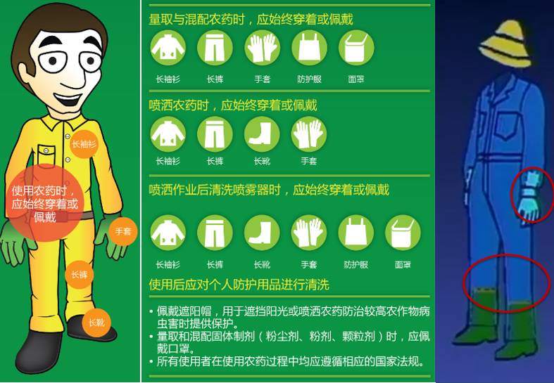 使用合適的防護(hù)裝備(PPE),是使用農(nóng)藥產(chǎn)品的最后一道防線,對(duì)個(gè)人防護(hù)用品,一定不能大意并增加暴露風(fēng)險(xiǎn)。為此,小杜在此特別提醒,要做到在任何時(shí)候,都小心處理農(nóng)藥產(chǎn)品以避免污染,并維護(hù)好噴藥設(shè)備,最后也是最重要的,就是要穿戴合適的防護(hù)用品。