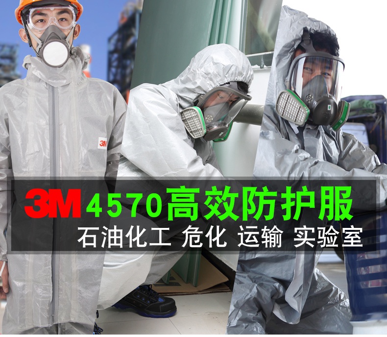 3M4570防護服帶帽連體防強酸堿C級防化服防噴濺化學(xué)防核輻射顆粒雙拉鏈防護服