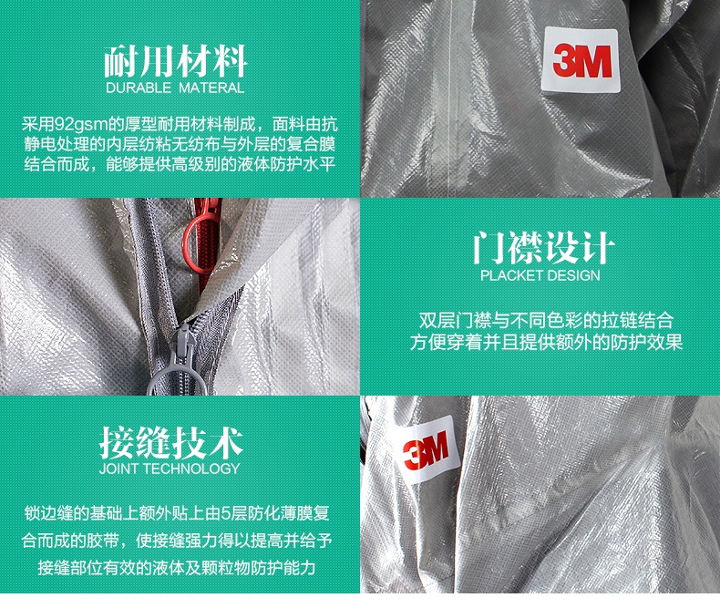 3M防護服專門用于工業(yè)場所,作為一種防止皮膚在某些工作環(huán)境中與液體飛濺和灰塵接觸的物理屏障。通常用于化學(xué)制品混合和處理、化學(xué)制品/石油泄漏和清理、金屬冶煉、金屬蝕刻、有害廢棄物整治、消除污染/基地停用、油艙清洗、感染源/生物危害、處理有毒粉末等領(lǐng)域。