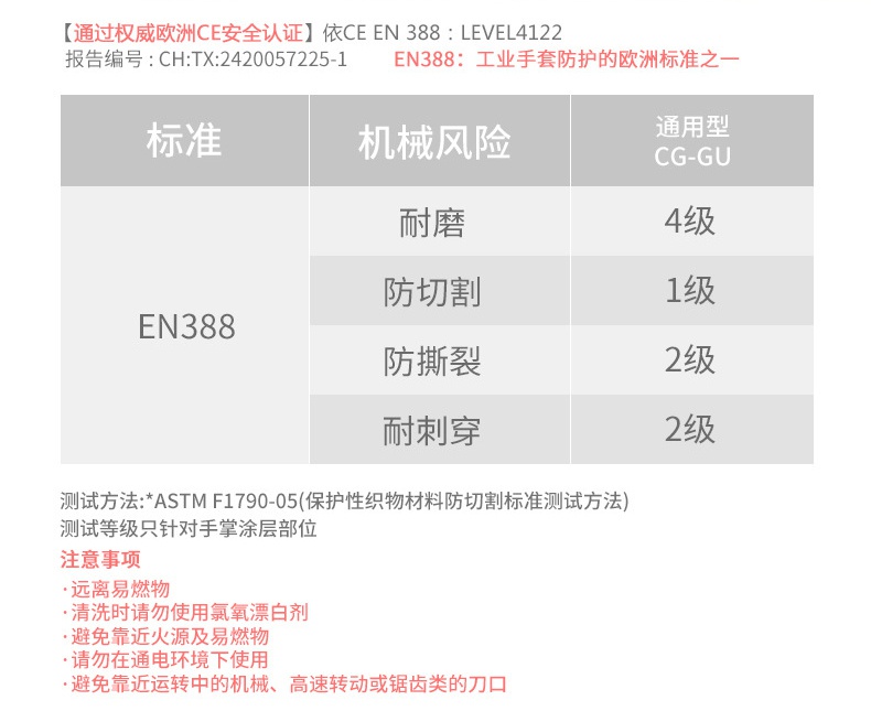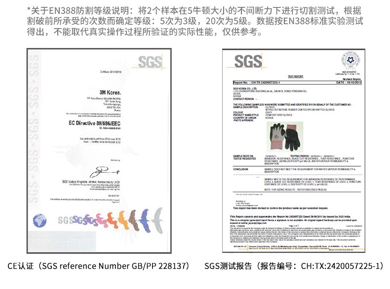 3M防割手套采用高性能織物制造,5級防割具備優異的防割耐穿刺和抗磨系列性能。