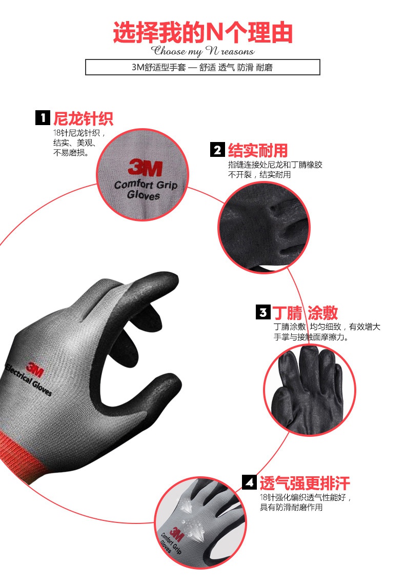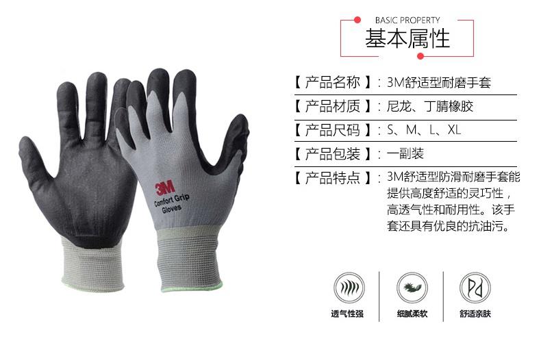 3M舒適型防滑耐磨丁腈涂層手套