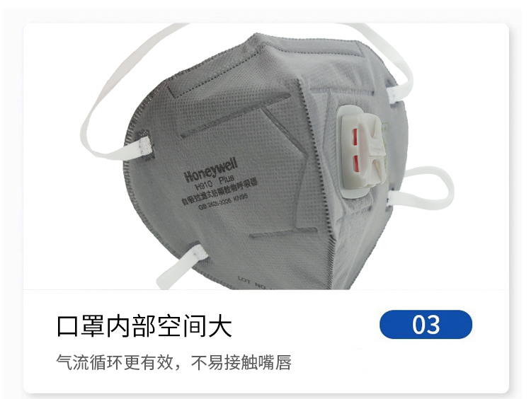 霍尼韋爾H910VPlus帶閥活性炭KN95防塵口罩H1009102CV用于防護非油性顆粒物,過濾效率超過95%;防塵口罩防偽濾材,假貨無所遁形;