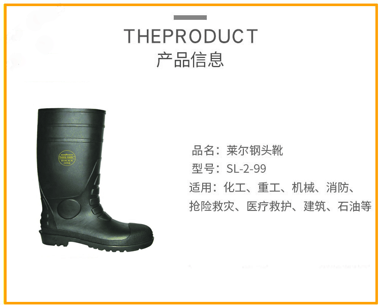 萊爾SL-2-99黑底雙鋼防化安全靴符合國標,LA,CE,CSA認證;