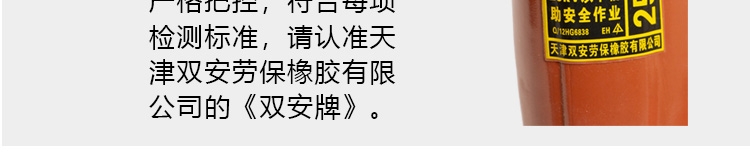 雙安絕緣靴電絕緣膠靴由橡膠加工而成,絕緣、防滑、耐磨,適用于25KV以下電力、電器設備施工維修作業時作為輔助安全用具。